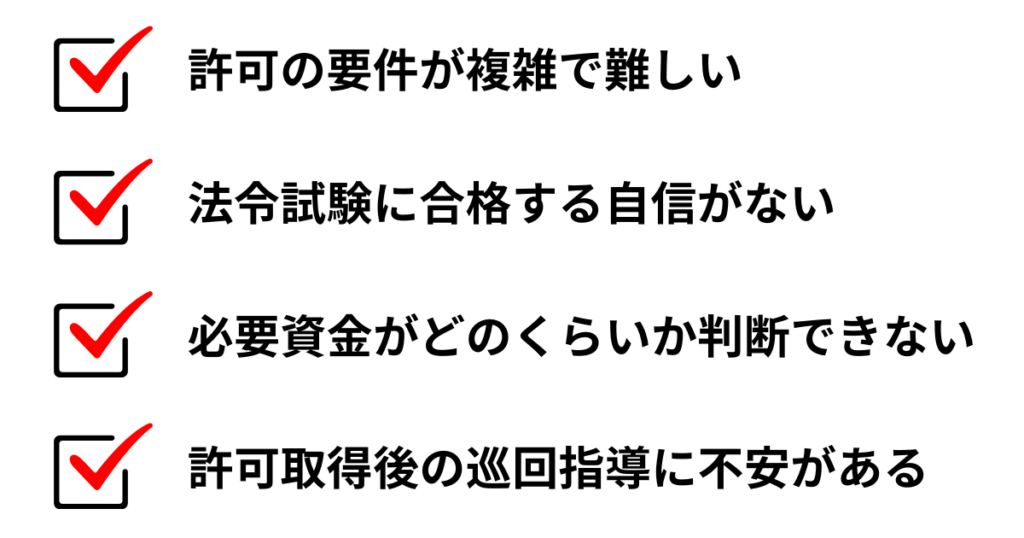 「許可取得までの流れは?」「許可の要件は?」など、気になる点は何でもご相談ください。